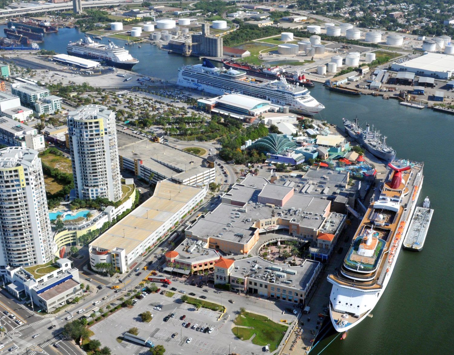Port Tampa Bay is actively planning a fourth cruise terminal. Currently the port offers three cruise terminals in the downtown Channelside area: Terminal 2, Terminal 3, and Terminal 6.