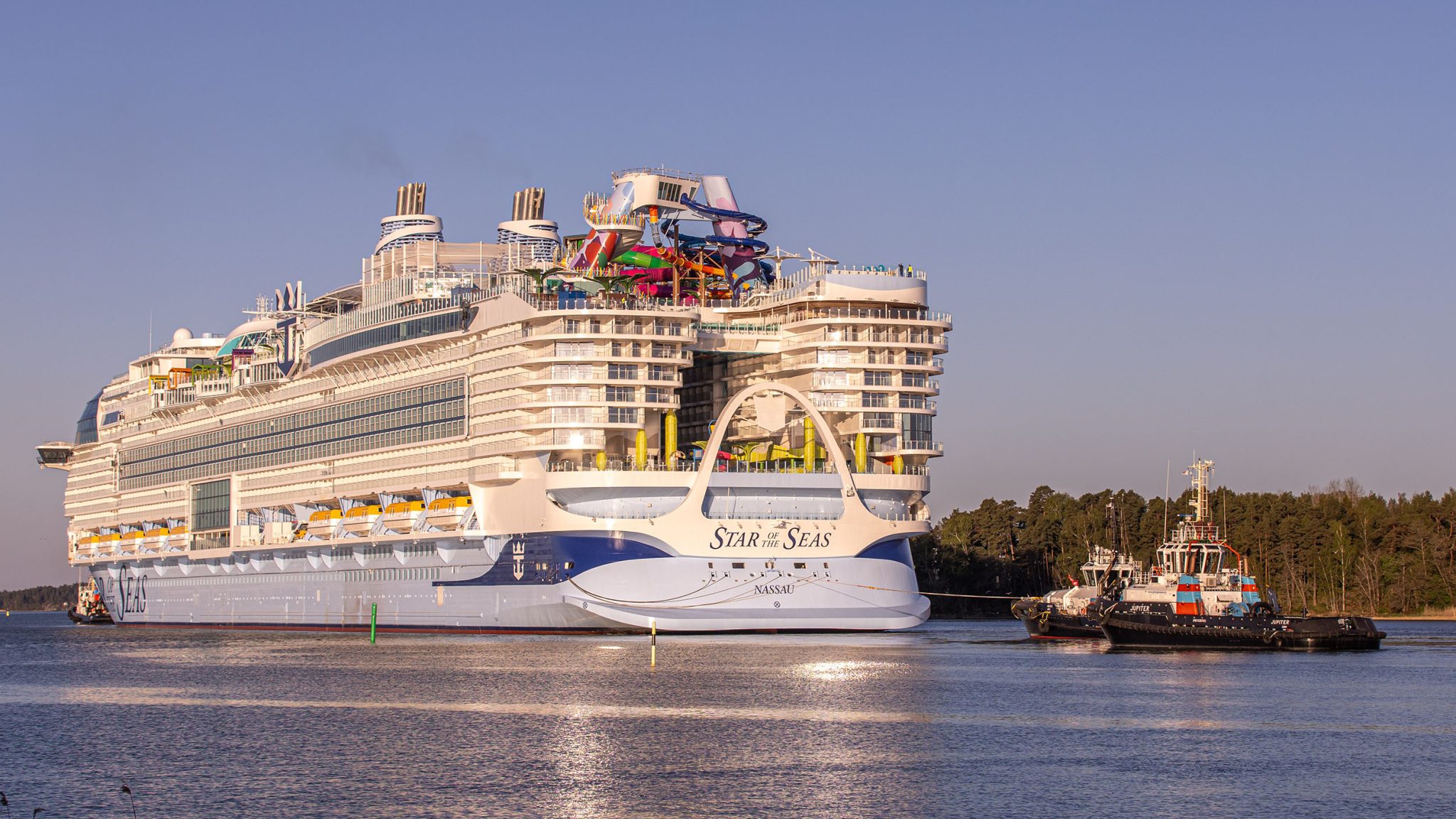 Royal Caribbean’s next new cruise ship, Star of the Seas, headed out to the open ocean for the first time to begin sea trials.