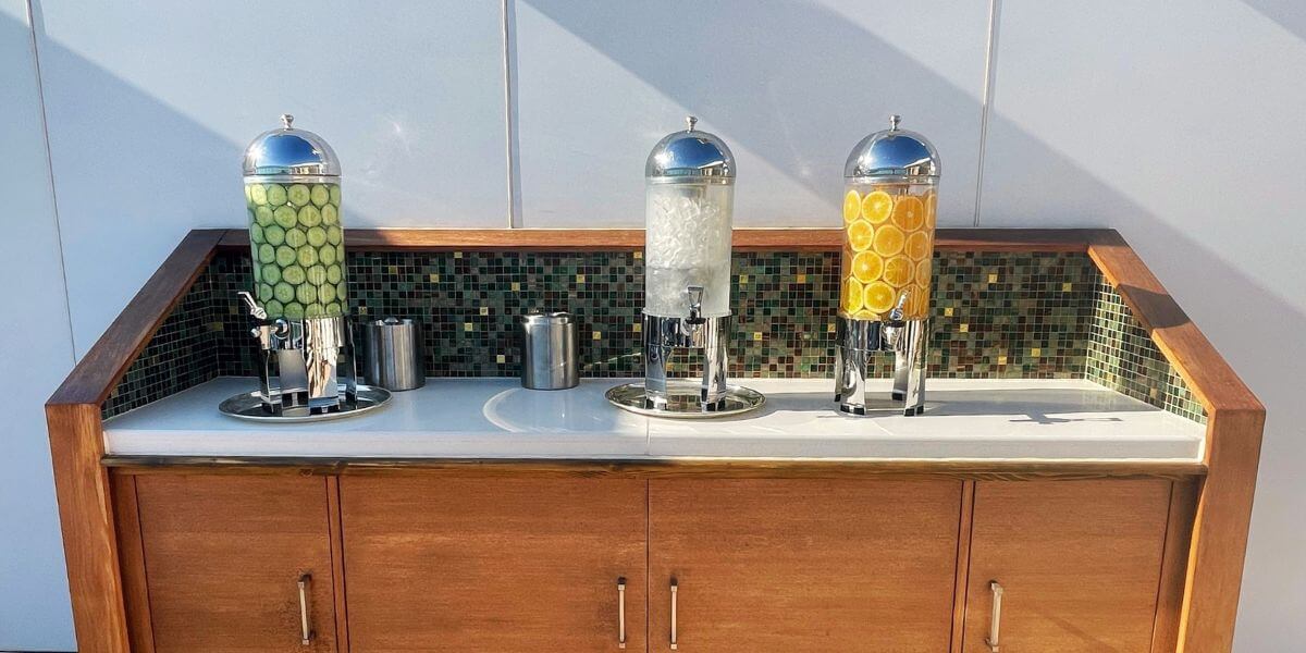 In The Sanctuary and the Spa, you’ll find a selection of iced water dispensers with water that’s flavoured with fresh cucumber or orange slices.